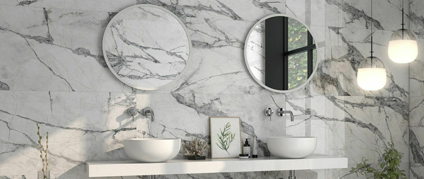 Invisible Marble Tiles are unique polished marble effect porcelain tiles.