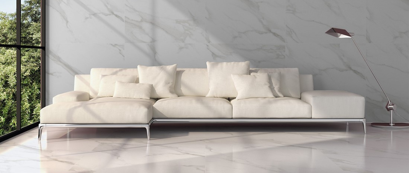 Statuario Mercury imitates natural Statuario Carrara, a white marble from Italy without the inherent variation found in natural products